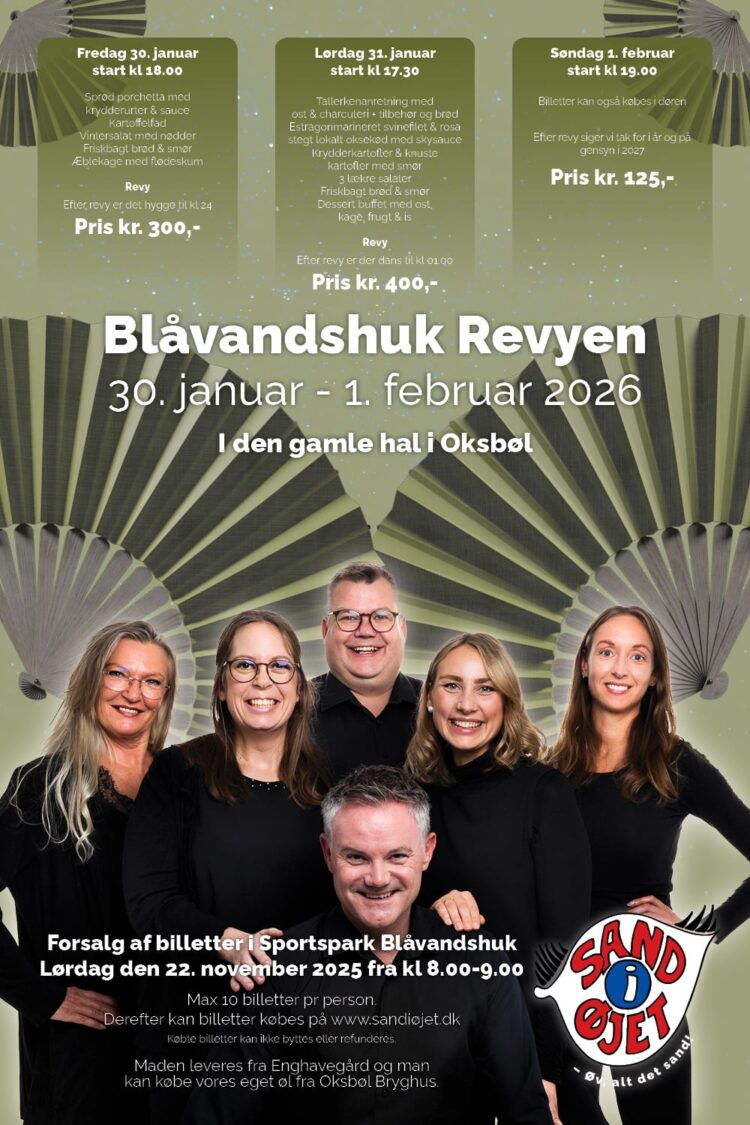 Til revyen kan du selvfølgelig købe en iskold Sand i Øjet fadøl og Tom har lovet at lave rigeligt.